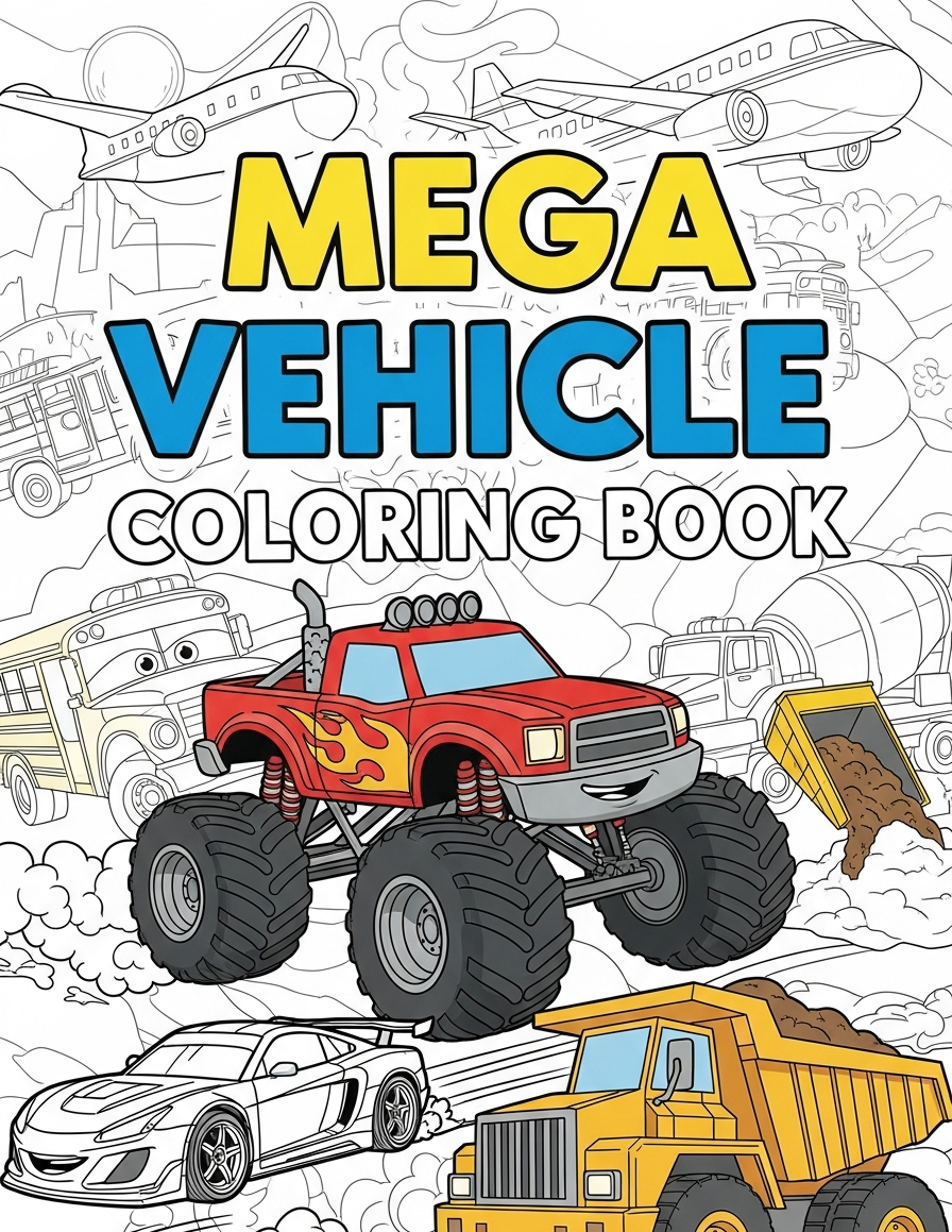 Start your engines! This Cars & Trucks Coloring Book is packed with 121 fun and easy-to-color vehicle pages specially designed for kids, toddlers, and young vehicle lovers.