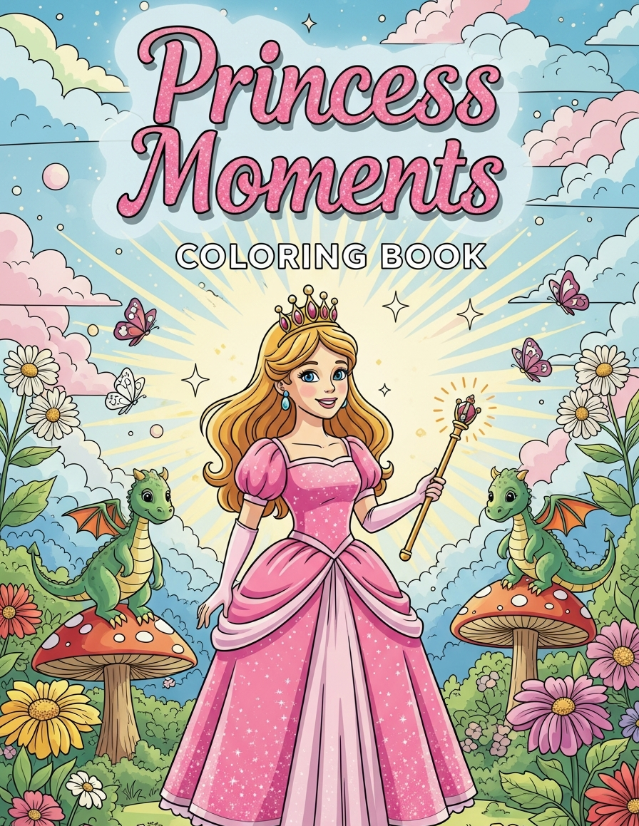 Perfect for ages 3 to 8, this enchanting coloring book features cute princesses, fairy-tale scenes, magical creatures, royal outfits, ballrooms, gardens, and sweet moments to color with joy.